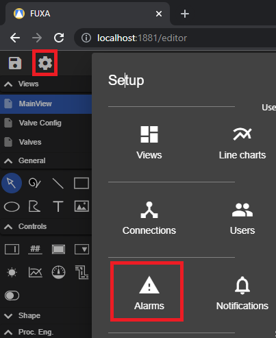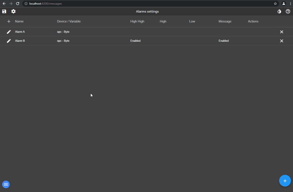 活跃的警报和历史可以通过菜单或头部按钮配置视图来显示。布局设置。